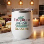 Sip slowly and let the island stick with you. This 12oz stainless wine tumbler keeps chilled rosé bright and morning coffee warm while you soak up porch breezes or laugh beneath tiki lights. The powder-coated white finish feels smooth in hand and shows off the colorful Trop Rock Island artwork — faded palms, relaxed lettering, …